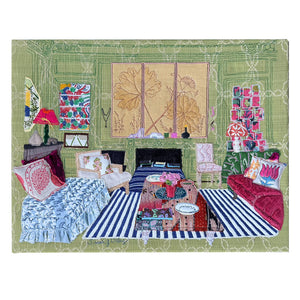 Fabric wrapped on stretchers. Can be framed or left as is.