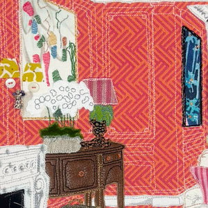 Fabric wrapped on stretchers. Can be framed or left as is.