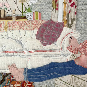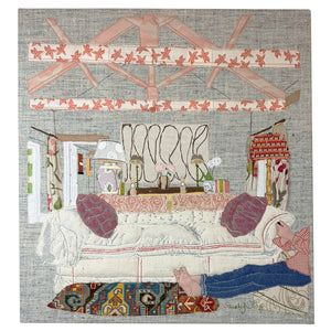 Fabric wrapped on stretchers. Can be framed or left as is.