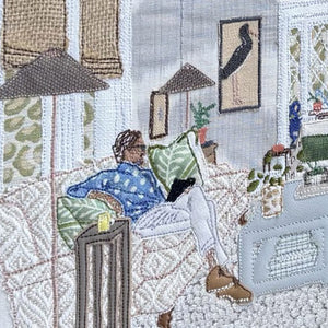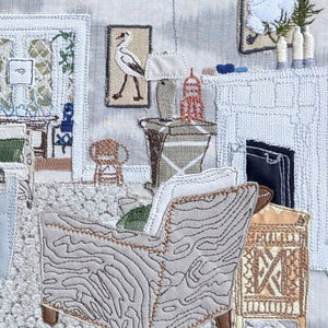 Fabric wrapped on stretchers. Can be framed or left as is.