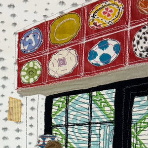 Fabric wrapped on stretchers. Can be framed or left as is.